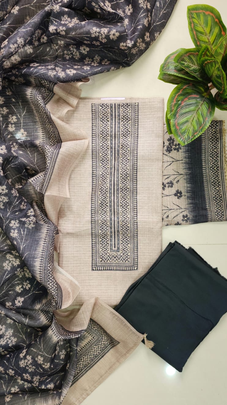 Top (2.50 meters) Beige linen chanderi neck and daman handcrafted