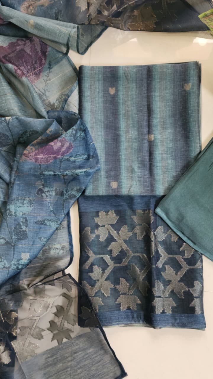 Top (2.50 meters) self flower weaving, Linen chanderi,  daman dark mung