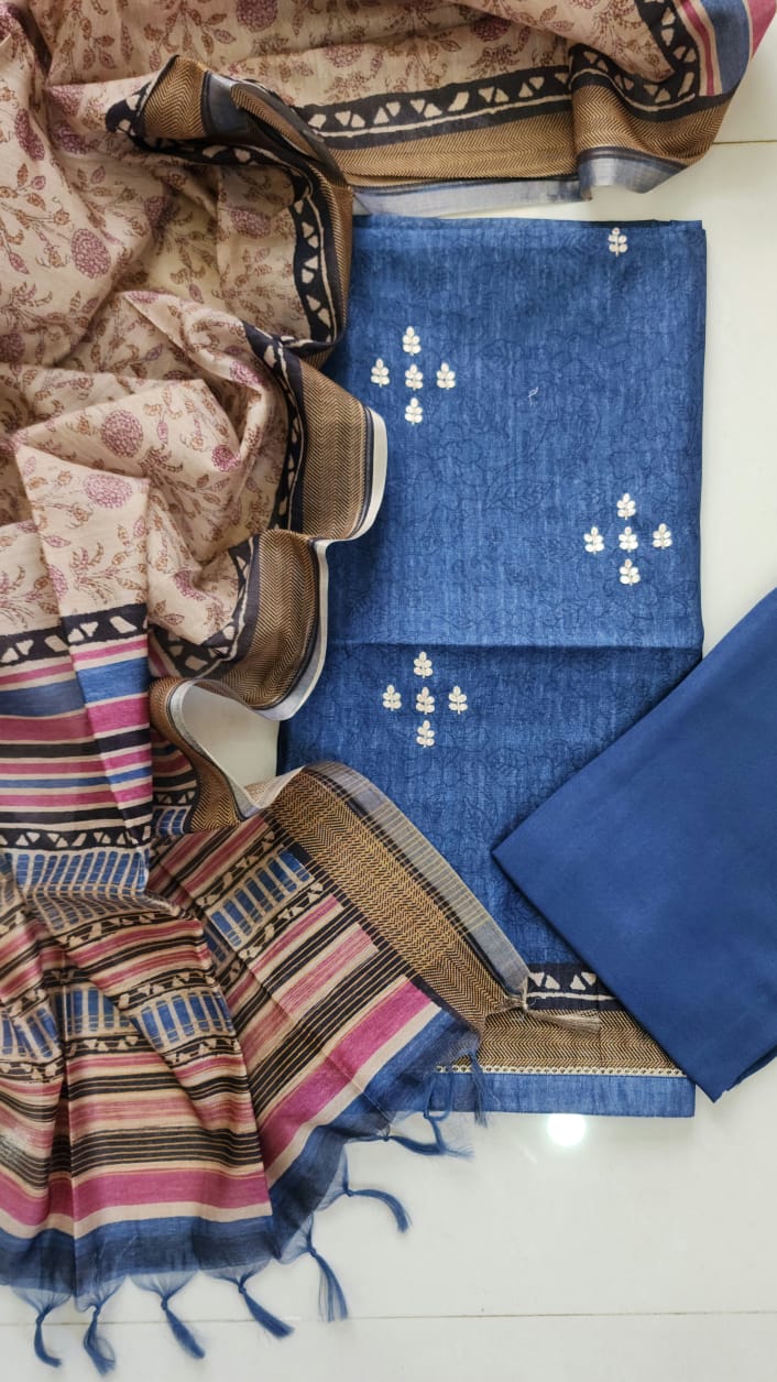 Top (2.50 meters) - silk blend pitta work with lace in daaman